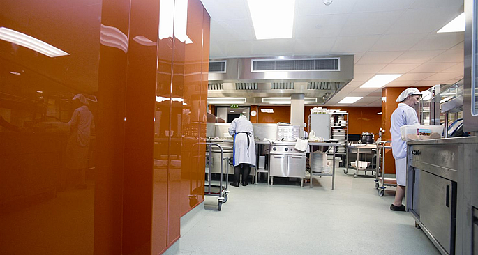 The ability to control hygiene applies to ceilings as much as floors and walls. We can offer the prefect solution through a wide variety of ceiling coverings to suit all environments from suspended gridded ceilings with wipeable tiles in food preparation areas to vinyl ceilings in clean rooms